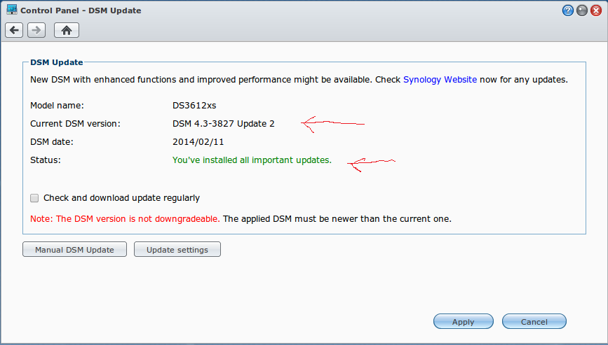 Μόλις εγκαταστήσετε με επιτυχία το DSM 4.3-3827, πρέπει να κάνετε αναβάθμιση για την λήψη των τελευταίων ενημερώσεων ασφαλείας.